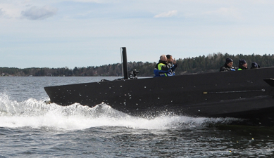 In this mode, the diesel engine and water-jet remain the propulsion system of choice and can propel the craft at sprint speeds of up to six knots. The vehicle’s typical cruise speed in this mode is four knots.